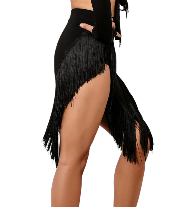Super sexy φούστα λάτιν με ιδιαίτερα κόψιματα στους γοφούς και πλούσια κρόσσια τα οποία θα αναδείξουν με τον καλυτερο δυνατό τρόπο τα καλλίγραμμα πόδια σας.